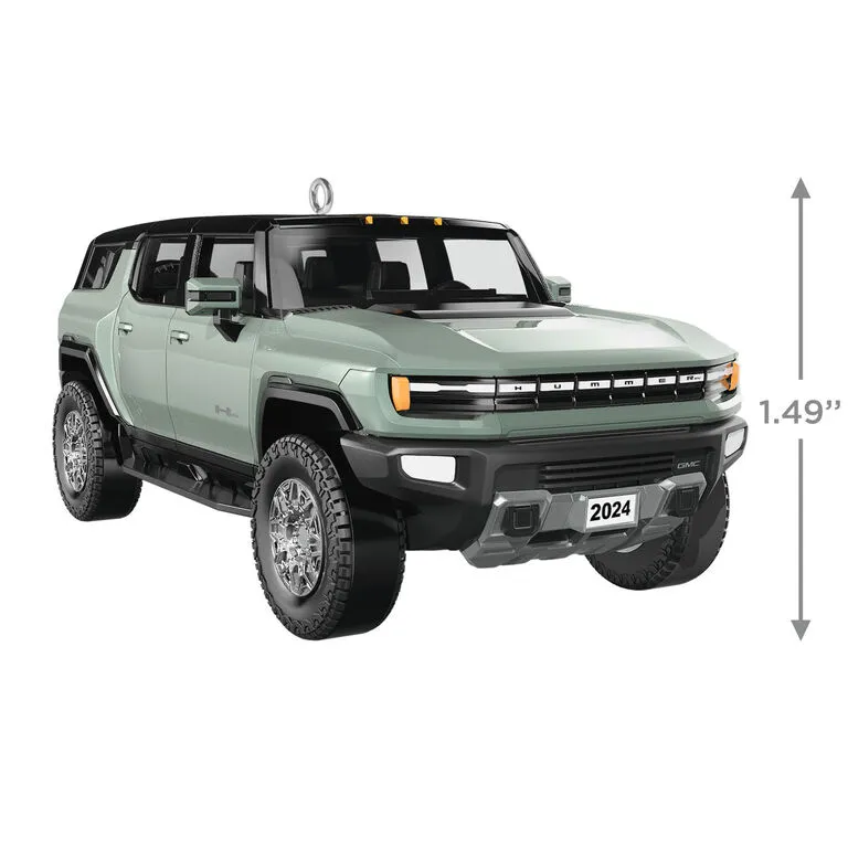 Hot off the production line and onto the Christmas tree comes this ornament featuring the 2024 all-electric model of the iconic Hummer sport utility vehicle. Combining many of the features of a pickup with the versatility of an SUV, this design in die-cast metal features a 2023 year date on its rear plate and wheels that turn.