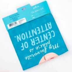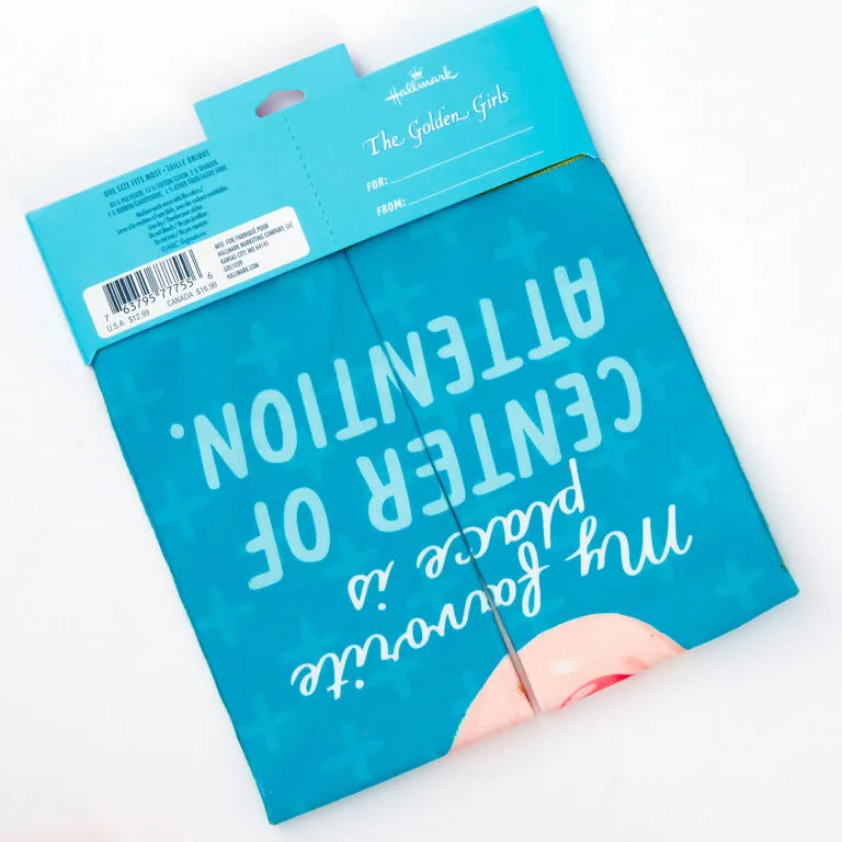 Make Blancheāand yourselfāthe center of attention when you wear these socks fit for a Southern belle. Adult-size crew socks feature an illustration of Blanche Devereaux from “The Golden Girls.” A funny quote and patterned design on a blue background with gold cuff and toe complete the fabulous footwear.