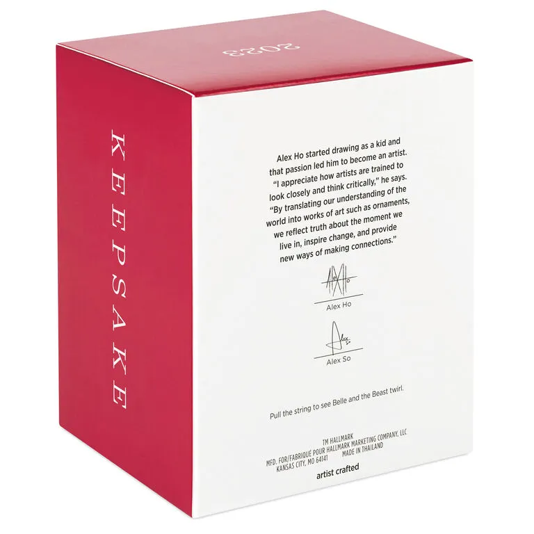 - Key Features: Pull the string to see Belle and the Beast twirl.