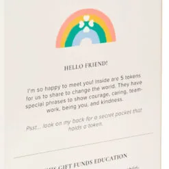 - Box includes one cotton and poly-fiber doll and a kindness kit with five wooden tokens with special phrases to show teamwork, courage, being you, caring and kindness.