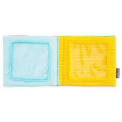 - Soft plush baby photo book with clear vinyl window slots hold six 4×6 photos.
