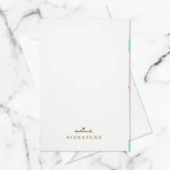 Pop-up love greeting card features a design of pink flowers with gold foil accents and a “love you” message on the front. Open the card to reveal the 3D pop-up surprise inside—no assembly required: an intricate, laser-cut pink lotus flower with glitter accents and green leaves and a loving message lettered in gold foil. This charming card crafted from premium card stock is a work of art sure to be displayed all year long, making it an unforgettable way to share the deep love you have for someone special on their birthday, anniversary, Valentine’s Day or anytime. When open, card lays flat for display; 3D pop-up inside measures approx. 2.13″ H.