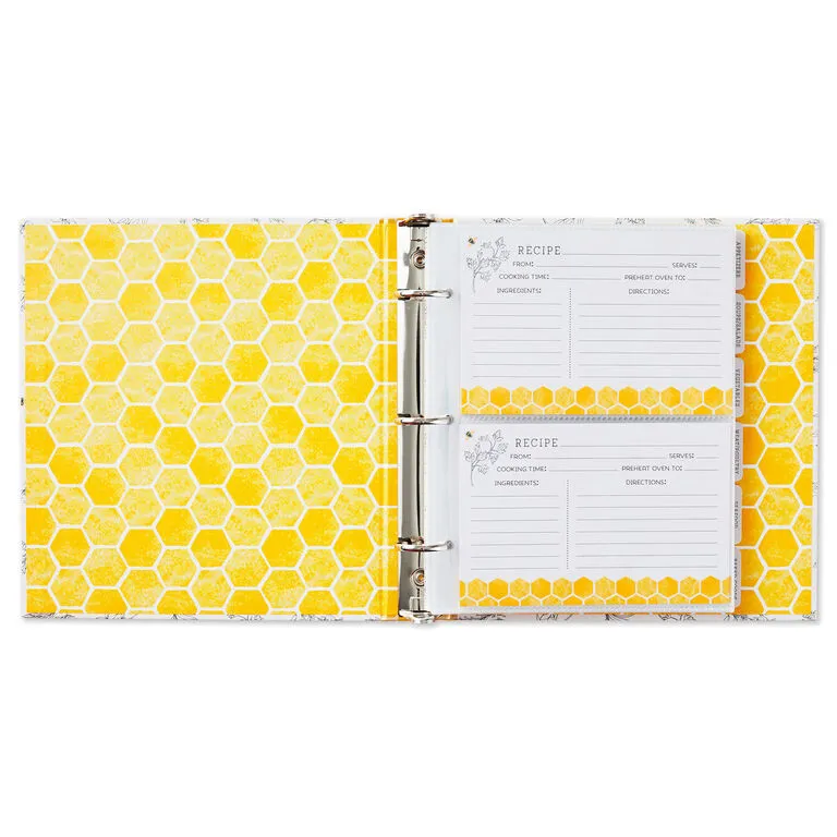Decorated with a cute pattern of herb illustrations dotted by bees, this recipe binder is an ideal spot to keep instructions for making your favorite dishes. In addition to 20 double-pocket poly sleeves sized for 4×6 recipe cards, this 3-ring book includes a pocket page, quick-finding tab dividers, a helpful reference section and 40 coordinating recipe cards to help bring tasty treats to life. Makes a great gift for your favorite chef.