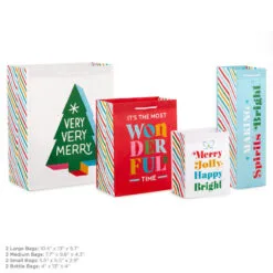 Hallmark Bright Wishes 8-Pack Christmas Gift Bags, Assorted Sizes And Designs